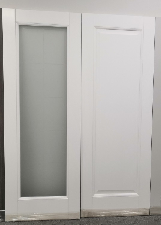 Межкомнатная дверь VFD (ВФД) Emalex 1 ДО со стеклом Emalex Mindwhite (белая с кремовым оттенком матовая, без текстуры)