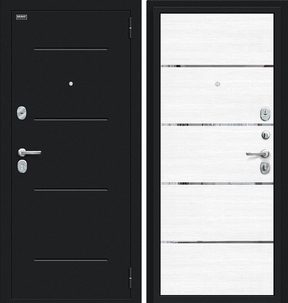 Входная дверь в квартиру Браво (Bravo) Лайн Букле черное/Snow Melinga