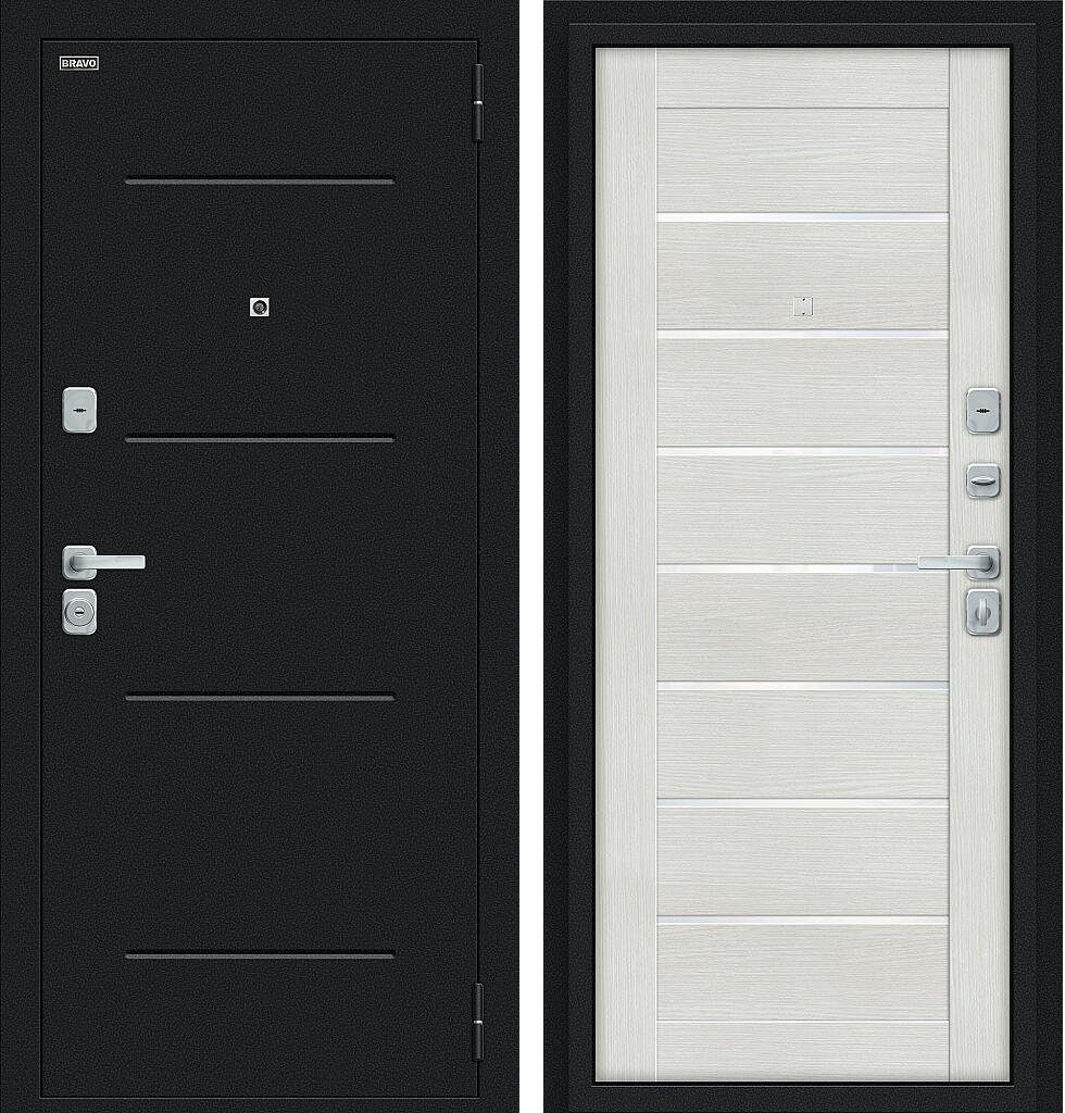 Входная дверь в квартиру Браво (Bravo) Техно/BChrome Букле черное/Bianco Melinga