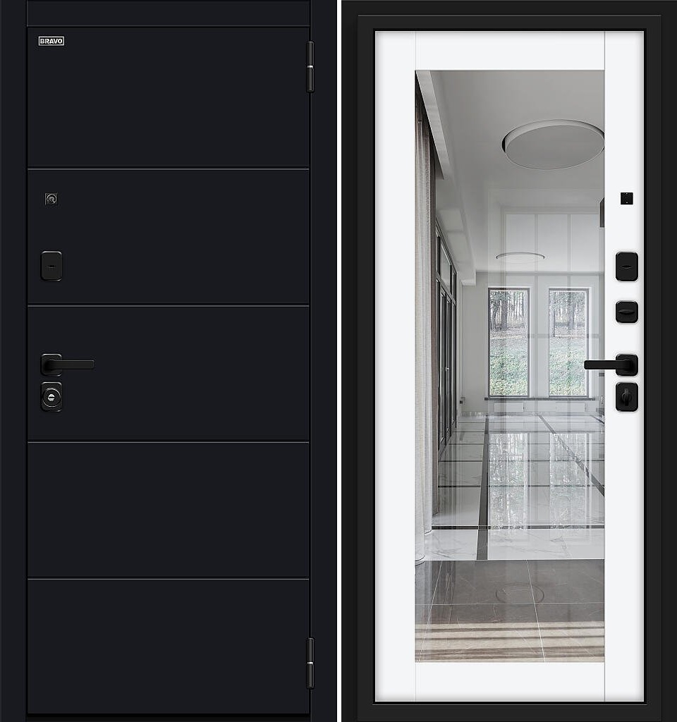 Входная дверь Браво в квартиру Флэт lack Shell /зеркало в рамке White Silk ПЭТ