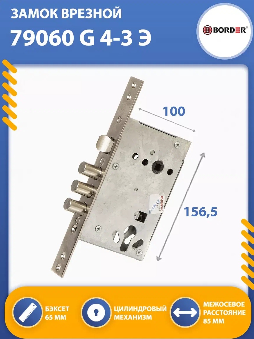 Нижний замок: Цилиндровый замок Border G 4-3 Э с 3 ригелями диаметром 16 мм, 4-й (высший) класс