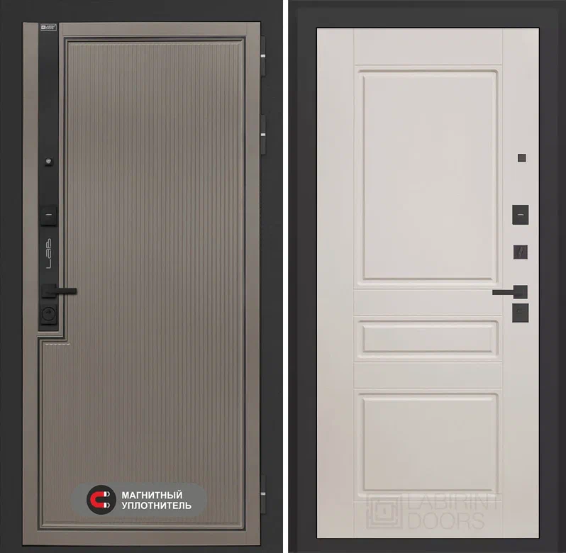 Входная дверь в квартиру Лабиринт с повышенной шумоизоляцией Лаб про 1 Велютто кофе 03 Крем софт, без текстуры
