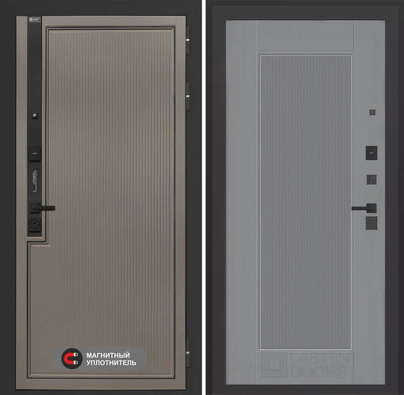 Входная дверь в квартиру с повышенной шумоизоляцией Лабиринт Лаб про 1 Велютто кофе 30 Серый софт рельеф (с текстурой)