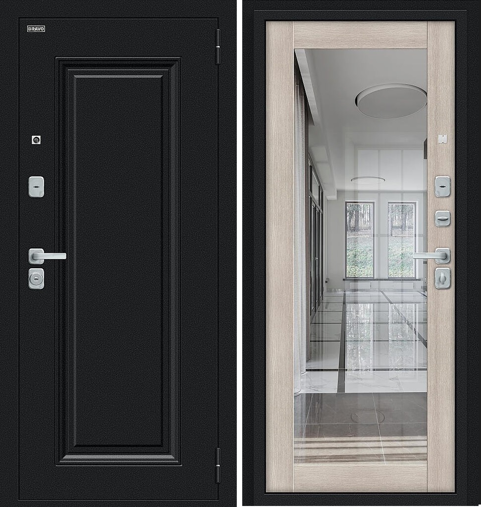 Входная дверь в квартиру с зеркалом Браво (Bravo) Флэш BChrome Букле черное/Cappuccino Melinga