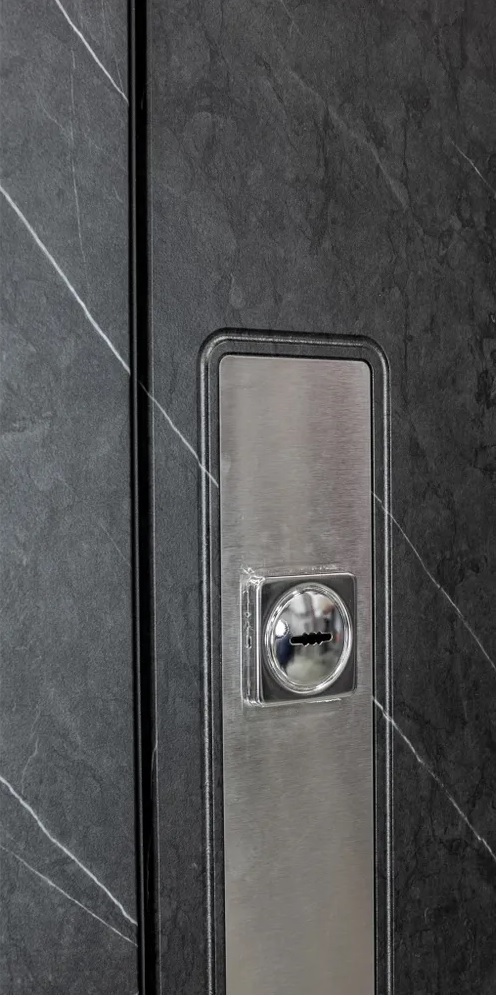 Внешняя отделка: Лист стали + ламинированная МДФ панель 10мм , цвет Гранит лава оникс