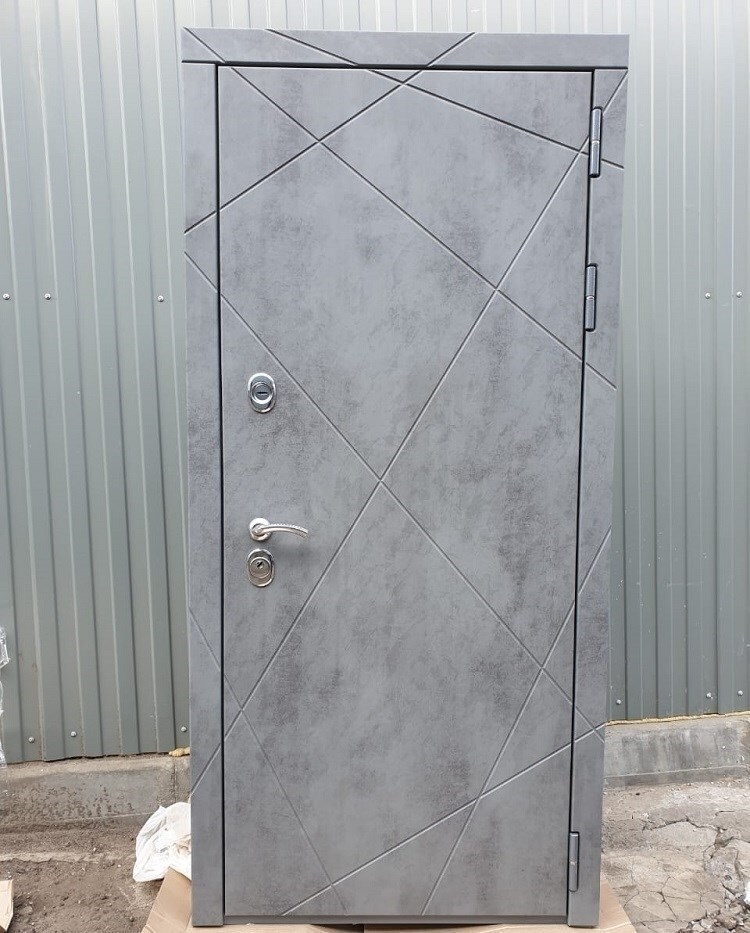 Входная дверь Рекс REX-13, с двух сторон панели МДФ толщиной 16 мм с рисунком ФЛ-291. С наружной стороны цвет "Бетон темный", с внутренней - панель с ударопрочным зеркалом цвет "Бетон темный".